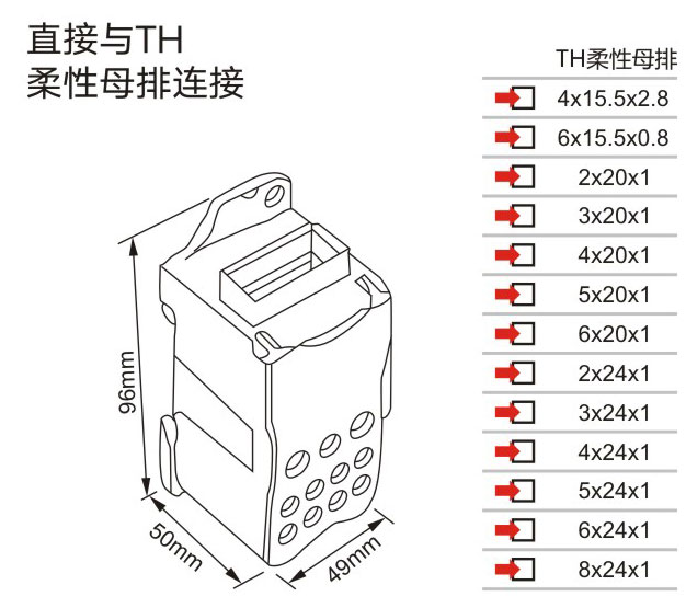 柔性母排可用平型接頭插入連接(TUKK250A & TUKK400A)