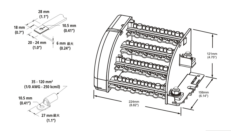 鍍錫銅排銅電纜或鋁電纜,可以目瀏確認線纜是否可靠連結