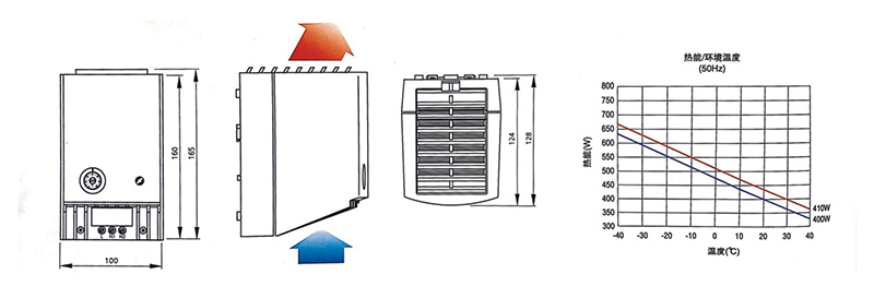 半導體式風機加熱器主要用于配電柜內,防止產生滴露,一體式調節器用于調整溫度變化,給配電柜內的電子/電氣元部件提供均勻的空氣溫度。