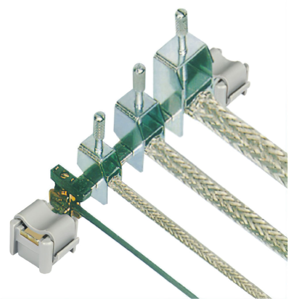 作用在電纜上的力可通過一彈性壓塊來調節,由此可隨時保證與匯流條的最佳接觸。如果電纜屏蔽不是在端子條前,而是在電氣柜的另一個地方接地,在此種情況下,推薦使用屏蔽支座AB/SS。如果需要將電纜屏蔽通過設備外殼的某一點接地,這種屏蔽支座也適用于匯流條的絕緣安裝。