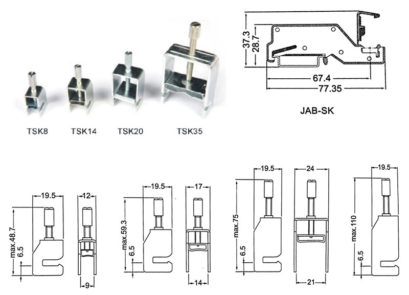 | 屏蔽接線端子: 用于匯流條上夾緊電纜的屏蔽層 屏蔽支架: 可安裝于 型導軌上,適用于10x3mm的匯流條 | TSK 8 | 2011001 | Φ8mm | 10 | |