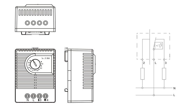 機(jī)電式的濕度控制器用于在相對濕度超過65%時,通過控制加熱器提高柜內(nèi)環(huán)境溫度,從而避免潮濕和腐蝕的發(fā)生。