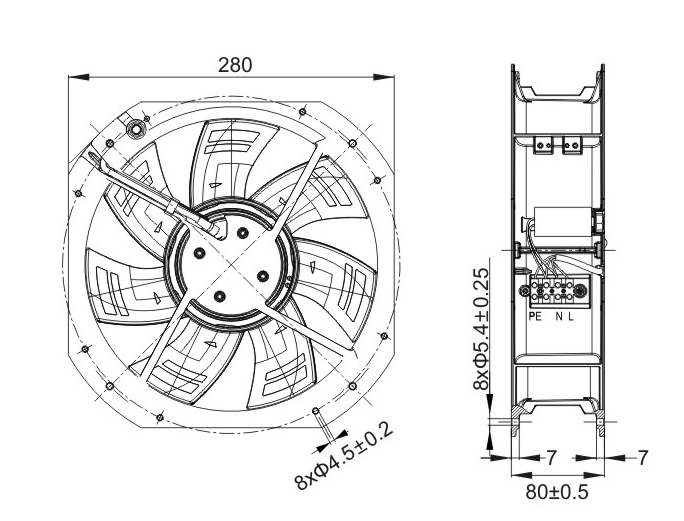 本風(fēng)機(jī)由外轉(zhuǎn)子異步電動(dòng)機(jī),塑料葉輪等組合而成,具有通風(fēng)散熱自冷卻的獨(dú)特優(yōu)點(diǎn),電機(jī)溫升低,從而延長(zhǎng)風(fēng)機(jī)壽命和可靠性。